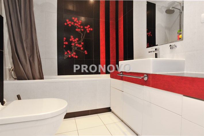 • Łazienka (4,9 m²) - wraz z zabudową meblową oraz wanną z prysznicem. Dodatkowo w łazience znajduje się piec gazowy kondensacyjny dwufunkcyjny firmy Saunier Duval Thelia Condens.