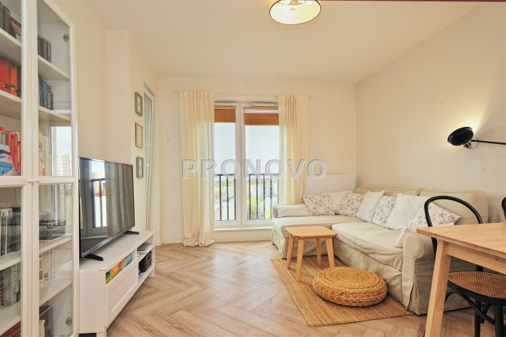 Mieszkanie składa się z przestronnego korytarza (9,34m2), salonu z aneksem kuchennym (23,12m2), sypialni (12,49m2), łazienki z wc (4,23m2). Z salonu jak i sypialni wyjście na taras od strony południowo zachodniej.