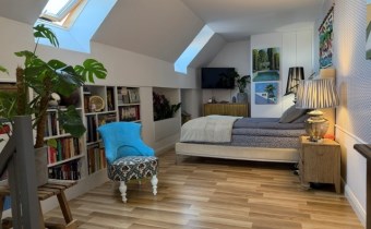 Duży pokój na piętrze daje możliwość łatwego wydzielenia dodatkowego pomieszczenia, dzięki czemu mieszkanie może mieć 4 pokoje.