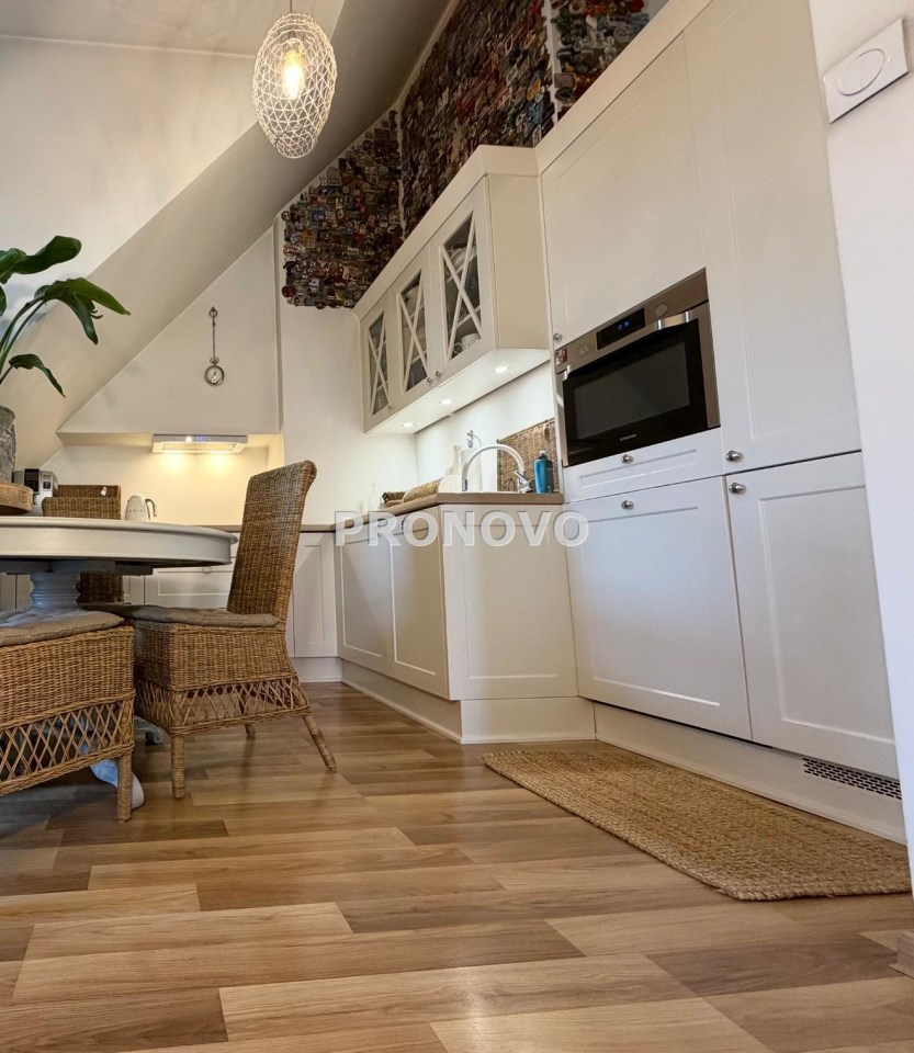 Nieruchomość wyróżnia się dużą przestrzenią, bardzo wysokim sufitem (aż 403 cm w najwyższym punkcie) oraz funkcjonalnym układem pomieszczeń. Dzięki temu mieszkanie jest jasne, przestronne i ma wyjątkowy charakter. Powierzchnia mieszkania według księgi wieczystej wynosi 79,21 m², natomiast powierzchnia po podłodze przekracza 100 m², co daje znacznie większą przestrzeń użytkową.