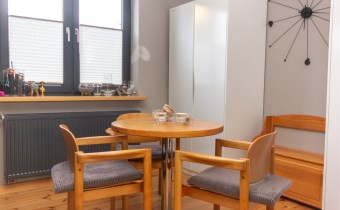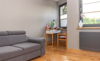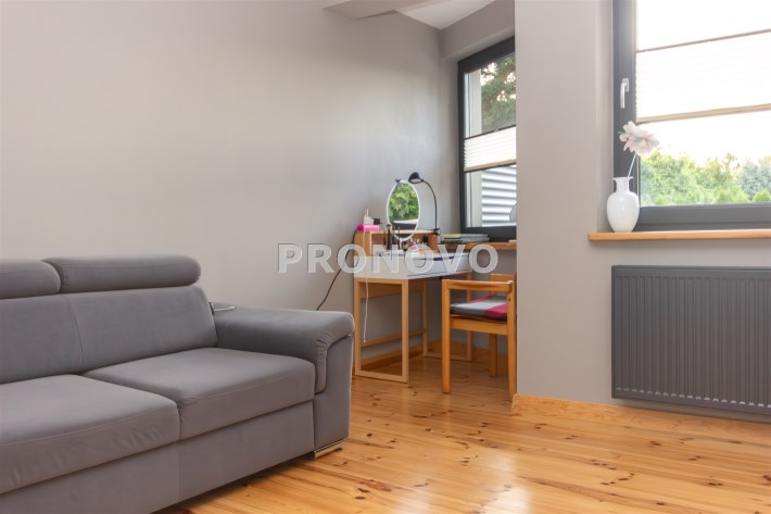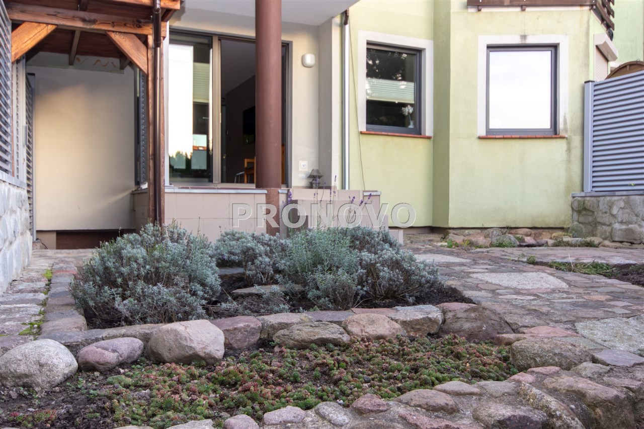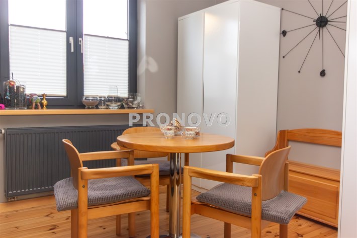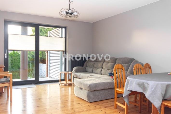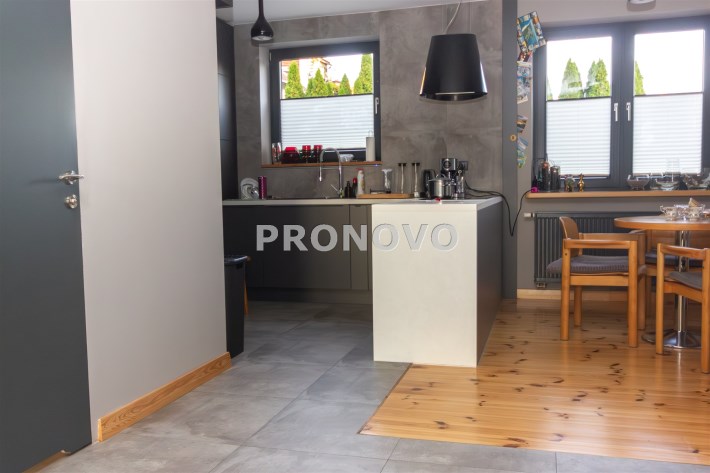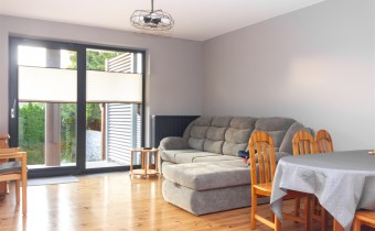 Na powierzchnię mieszkania składa się kuchnia w zabudowie , wyposażona w sprzęt AGD - pralka, suszarka, zmywarka, kuchenka, okap, piekarnik. Wydzielona jadalnia , oraz salon z wyjściem na taras i do ogrodu. Łazienka razem z wc, gdzie znajduję się wanna, toaleta, oraz miejsce gdzie znajduję się  piec gazowy- dwuobiegowy.