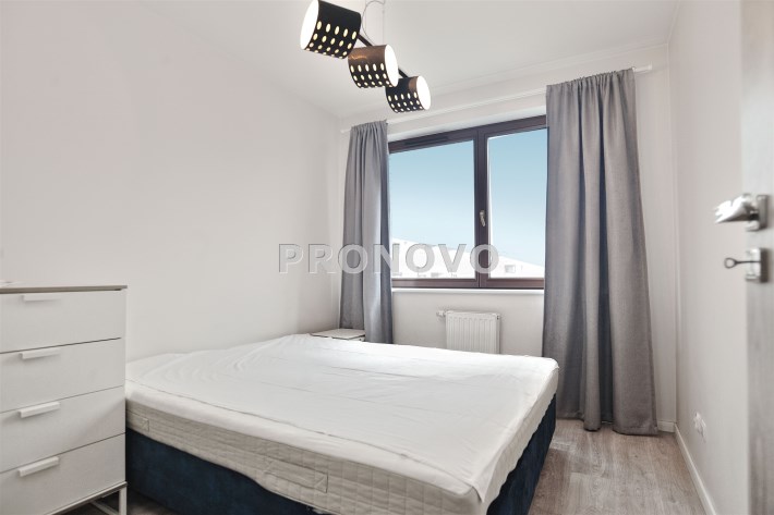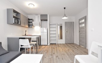 Dwie sypialnie z bezpośrednim wyjściem na duży taras – idealne miejsce do relaksu. Dodatkowo łazienka z kabiną prysznicową oraz praktyczny aneks kuchenny w korytarzu.