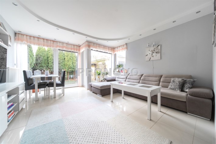 Na sprzedaż dwupoziomowe mieszkanie z ogródkiem w czterorodzinnym szeregowcu na zamkniętym strzeżonym osiedlu Bursztynowe w Warzymicach.