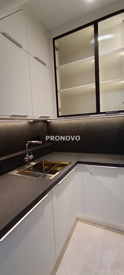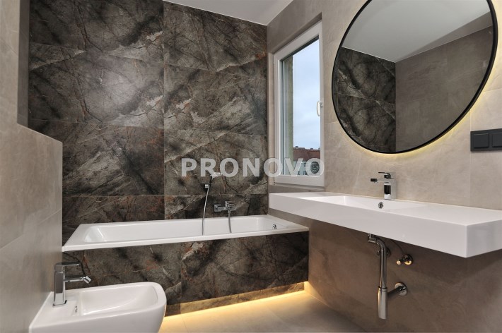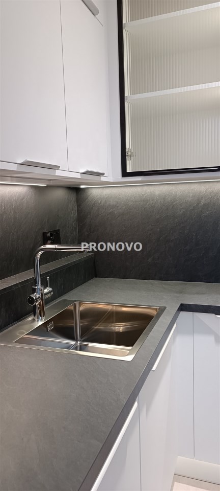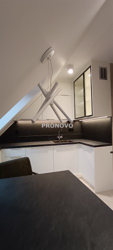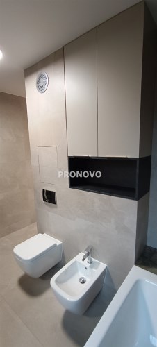 Podczas remontu użyto wysokiej jakości materiałów renomowanych marek, wymieniono instalację elektryczną, wyrównano ściany oraz zamontowano nowoczesny klimatyzator, zapewniający komfortowe warunki przez cały rok. W chwili obecnej rozpoczęte prace związane z wykonaniem zabudowy meblowej kuchni i łazienki. Projekt jest gotowy a koszt zabudowy i towarzyszącego jej sprzętu AGD został uwzględniony w cenie 870tys.