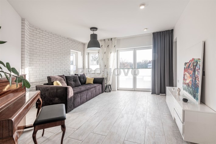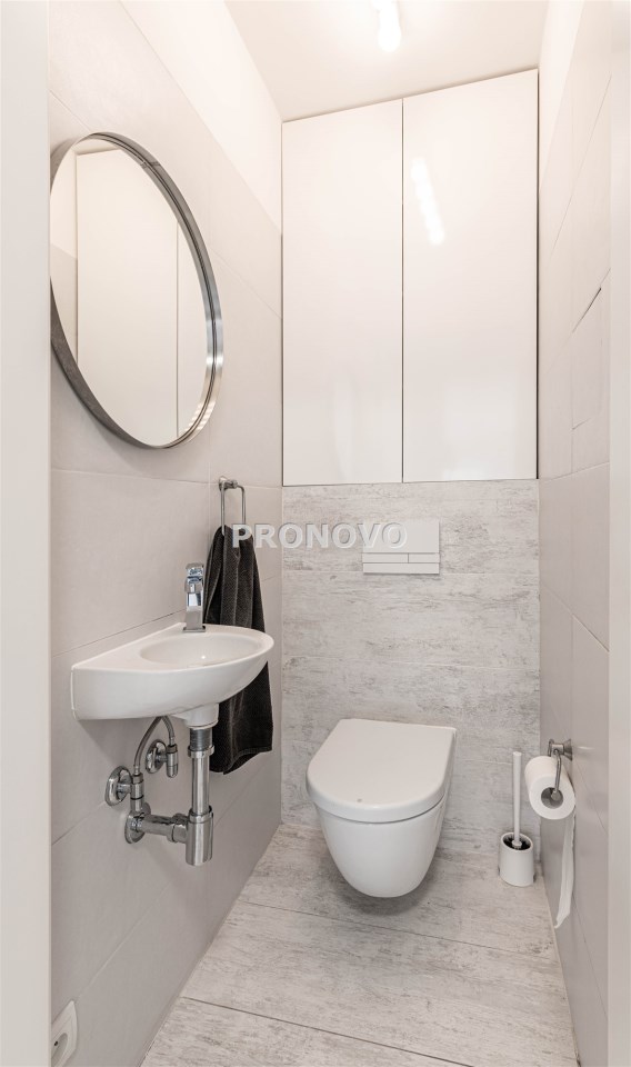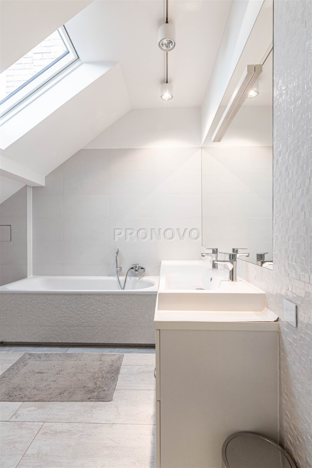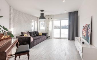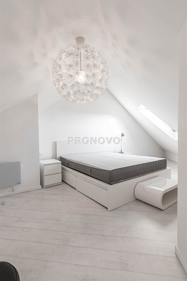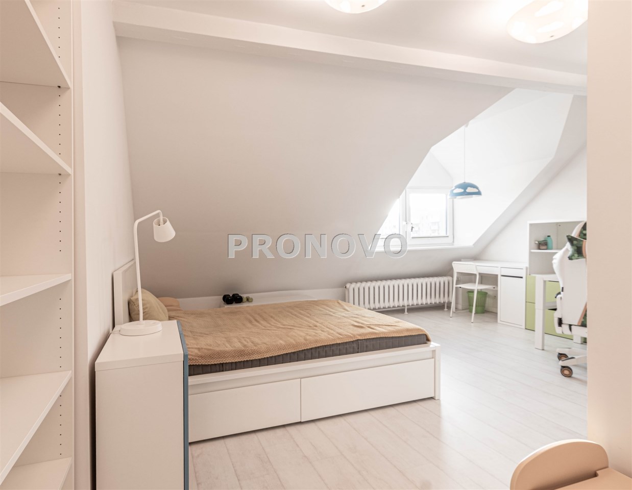Mieszkanie w bardzo dobrym standardzie, na podłogach panele, okna PCV, na wyższych poziomach drewniane, połaciowe. Ściany gładzone, malowane. Schody prowadzące na kolejne poziomy z litego drewna. Stolarka drzwiowa wewnętrzna, bezprzylgowa z zamkami magnetycznymi. Powierzchnia całkowita mieszkania to 150,00 m2.