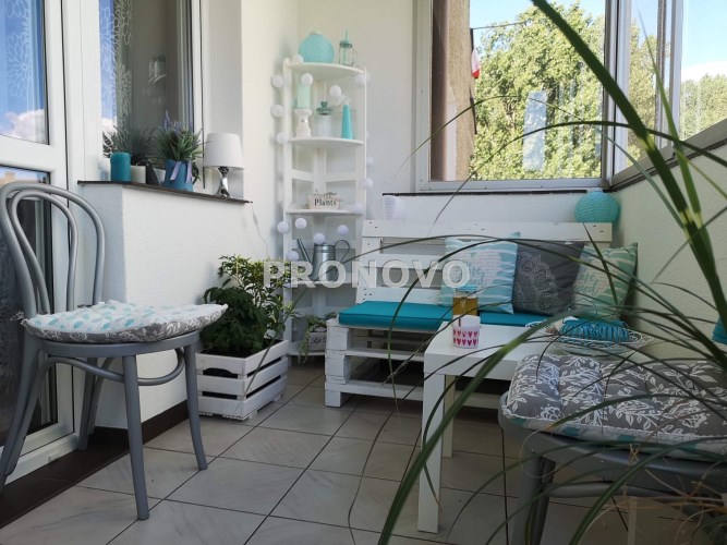 • salon z wyjściem na bardzo duży, zabudowany balkon – idealne miejsce na relaks,