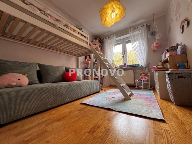 Mieszkanie jest czteropokojowe, w pełni rozkładowe, co oznacza, że do każdego pomieszczenia wchodzi się z przedpokoju. Dodatkowym atutem jest doskonałe doświetlenie wszystkich pokoi dzięki dużym oknom.