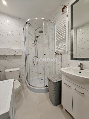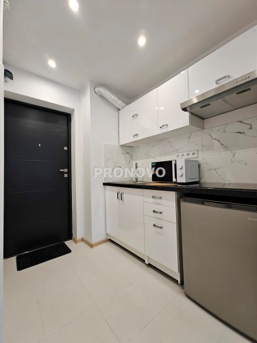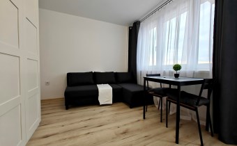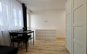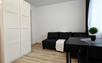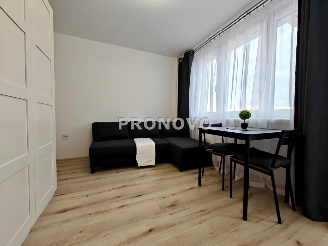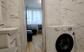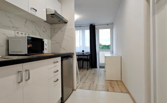 W skład mieszkania wchodzi aneks kuchenny połączony z pokojem dziennym z wyjściem na balkon, a także łazienka z prysznicem i WC. Całość została wykończona w wysokim standardzie – wszystko pachnie nowością!