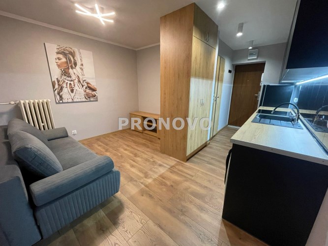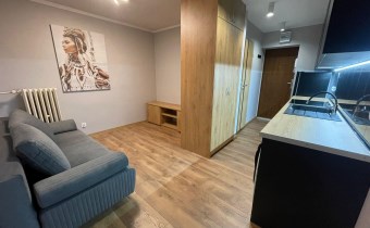 Kawalerka jest w pełni umeblowana, wraz ze sprzętami AGD.