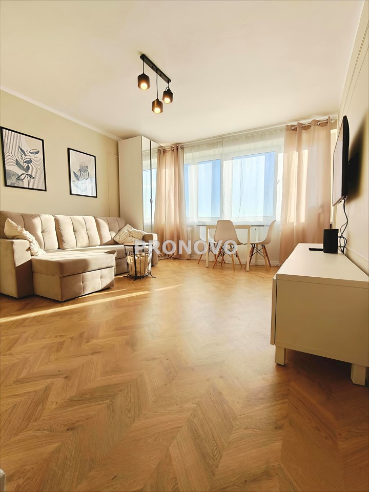 Mieszkanie znajduje się na 9 piętrze w 10-piętrowym budynku i oferuje panoramiczny widok na miasto. Lokal jest bardzo jasny, ciepły i po kapitalnym remoncie, dzięki czemu jest gotowy do natychmiastowego zamieszkania.