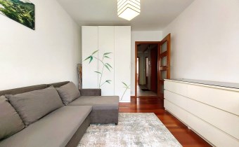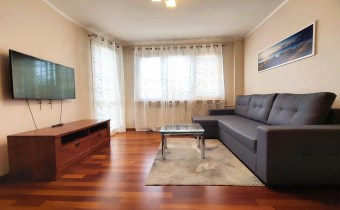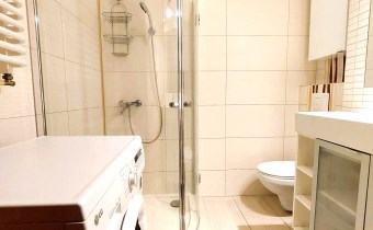Mieszkanie zlokalizowane na trzecim piętrze czteropiętrowego odnowionego budynku, usytuowanie dwustronne i środkowe, bardzo ciepłe i słoneczne. Jest wyposażone w niezbędne sprzęty takie jak: lodówka, zmywarka, mikrofalówka, płyta elektryczna, piekarnik, jest w pełni umeblowane. Opłaty to 2300 zł czynsz najmu, dodatkowo czynsz administracyjny w kwocie ok 685 zł (w tym zaliczka miesięczna za wodę zimną, ciepłą, ścieki i śmieci, ogrzewanie miejskie). Opłaty za energię elektryczną zgodnie ze wskazaniami liczników (ok. 100 zł miesięcznie), internet 40 zł.
