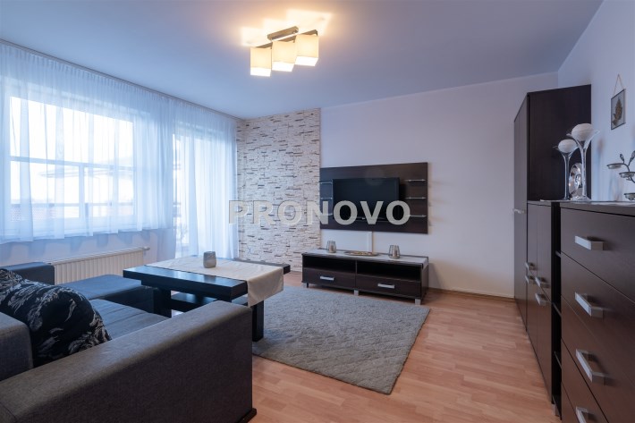 Mieszkanie położone na trzecim piętrze budynku, o północno zachodniej ekspozycji okien. Z balkonu rozpościera się piękny widok na zachodnią część miasta. Mieszkanie w bardzo dobrym standardzie, na podłodze panele, ściany gładzone, malowane. W łazience, z wanną i wc, ładna, jasna glazura i terakota. Pokoje w całości umeblowane i wyposażone. Kuchnia umeblowana i wyposażona w sprzęt AGD - płyta elektryczna, piekarnik elektryczny, lodówka, okap, kuchenka mikrofalowa. W łazience znajduje się pralka. Dodatkowo w mieszkaniu znajduje się duża garderoba. Ogrzewanie i ciepła woda z SEC - osobna umowa.