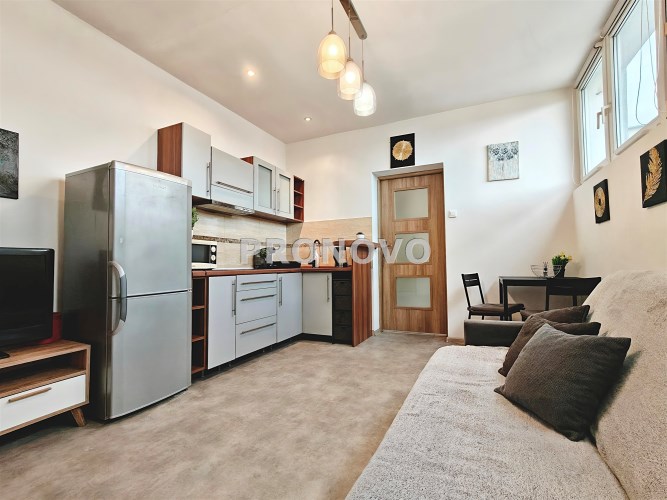 Lokal jest w dobrym stanie technicznym, umeblowany i gotowy do zamieszkania od zaraz. Na wyposażeniu: lodówka, płyta elektryczna, czajnik, kanapa rozkładana, łóżko, komoda, biurko, stół oraz krzesła oraz inne drobne wyposażenie.