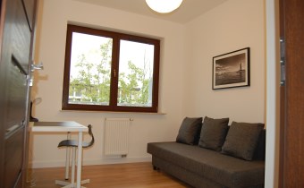 Mieszkanie 2 pokojowe zlokalizowane w nowym 4 piętrowego budynku z windą. Na powierzchnię mieszkania składa się salon z wyjściem na balkon Salon wyposażony w rozkładany tapczan , ławę . Sypialnia łóżko , biurko, krzesło biurowe.