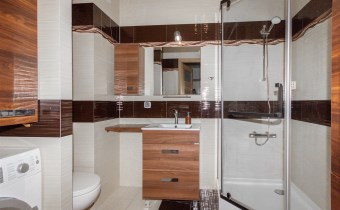 - łazienka z kabiną prysznicową i pralką,
