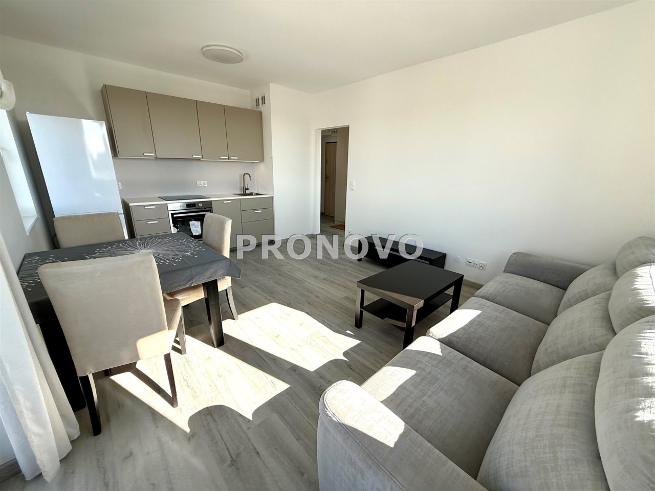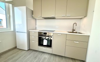 - salon z aneksem kuchennym (zabudowa kuchenna, wyposażona w sprzęt AGD - lodówka, piekarnik, płyta indukcyjna, okap, zmywarka)