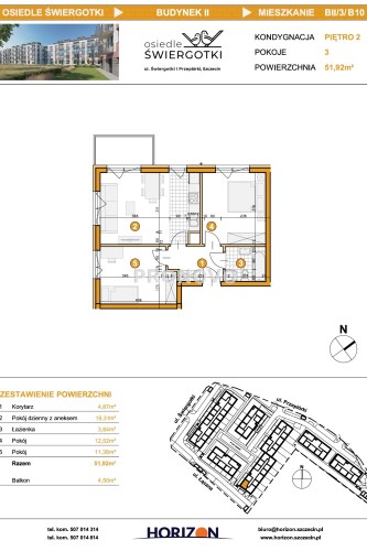 Mieszkanie znajduje się w niskim bloku mieszkalnym z 2025r. na IV piętrze, budynek z windą. Powierzchnia użytkowa ok. 52 m2 + balkon i zewnętrzne miejsce parkingowe w cenie 100zł/mies. + komórka 100zł/mies.