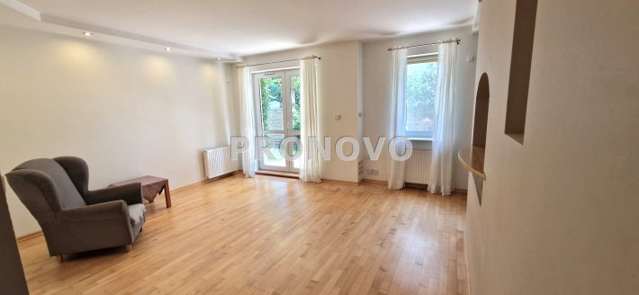 Na powierzchnię 83m2 składa się przestronny salon z wyjściem na 200m2 ogród, 2 sypialnie, kuchnia oraz łazienka wraz z wc. Mieszkanie jest odświeżone, pomalowano ściany oraz wymieniono wykładziny, w pełni umeblowane.