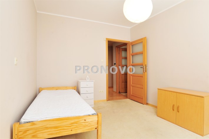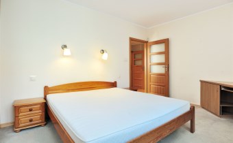 - Sypialnia (18m2) od strony północnej, od strony wejścia do mieszkania. Na podłodze wykładzina podłogowa. Biurko. Podłączenie do Internetu. Duża szafa typu Comandor z drzwiami suwanymi (4. częściowa) oraz oświetleniem od góry. Fronty szafy - ratan i duże tafle lustrzane.