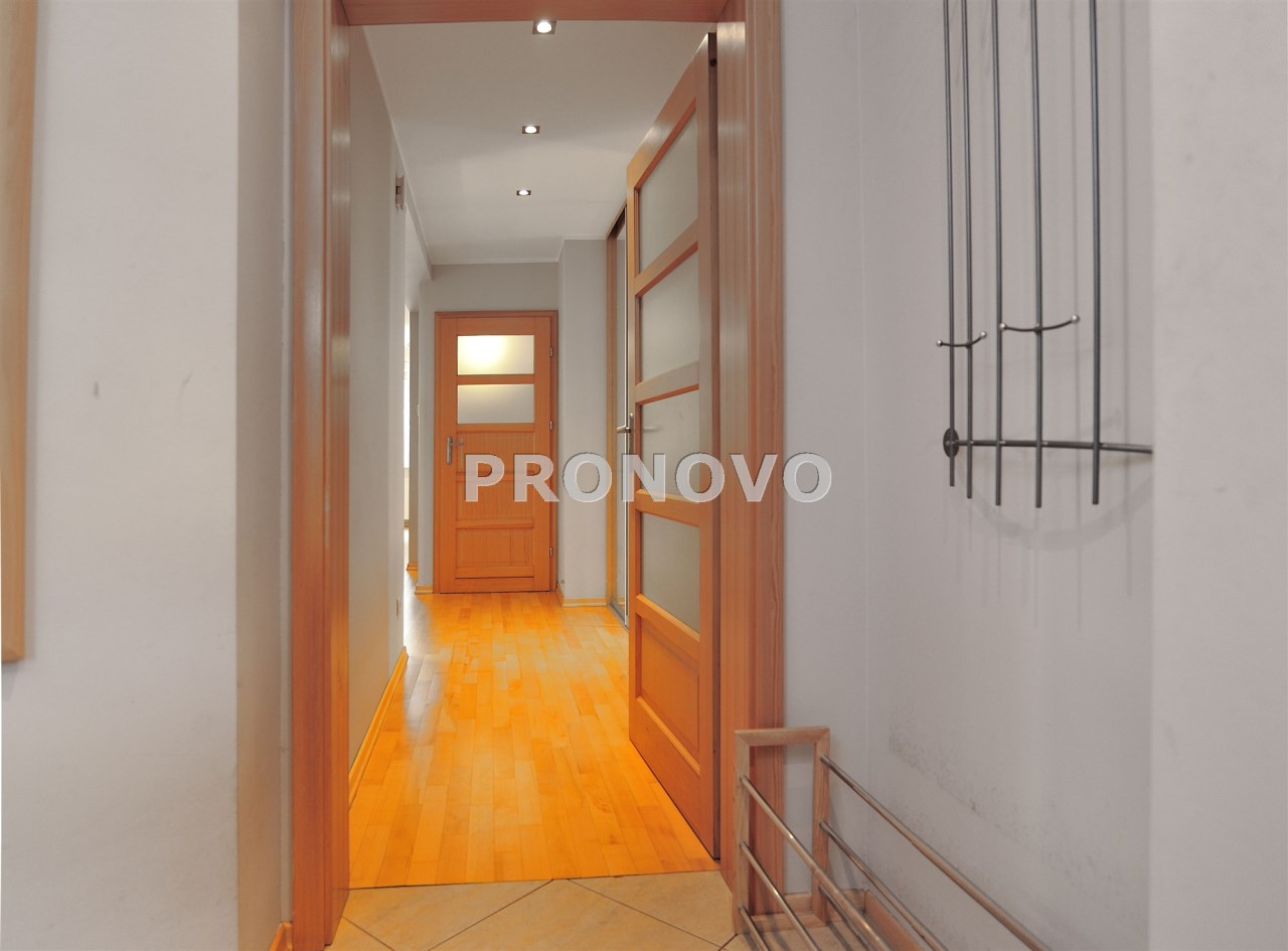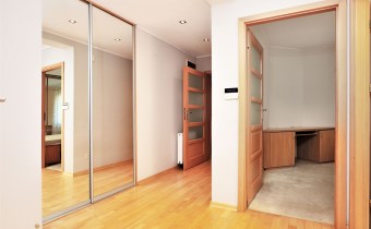 - Duży hall w środkowej części mieszkania i wejście do osobnej garderoby. W garderobie szafy i rellingi z wieszakami.